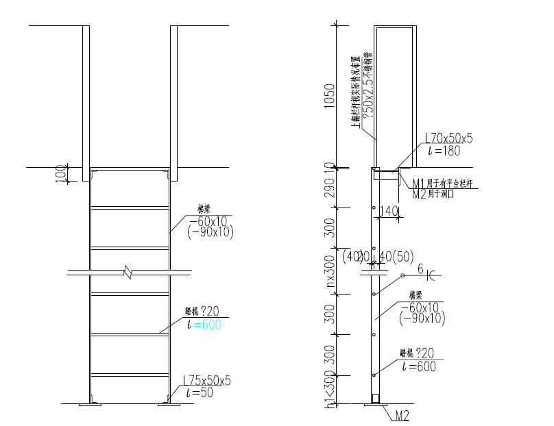 5.6.2在正常環境下使用的梯子,梯梁應采用下雨60 mm×10 mm的扁鋼,或具有等效強度的其他實心或空心型材。