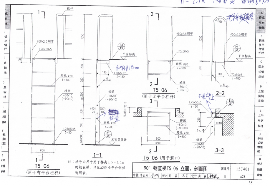 永久性安裝在建筑物或設備上,與水平面呈 75°~90°傾角主要構件為鋼材制造的直梯(見圖1)。